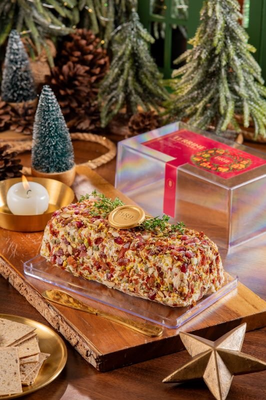 Combo da coleção Cheers – Hello 2026, contendo: 1 GUIRLANDA Cheers – P; 1 Terrine de Parmesão com Parma OU 1 Terrine de Gorgonzola com Caramelo de Nuts; 1 Cheesecake de Caramelo com Nozes OU 1 Torta de Maracujá.