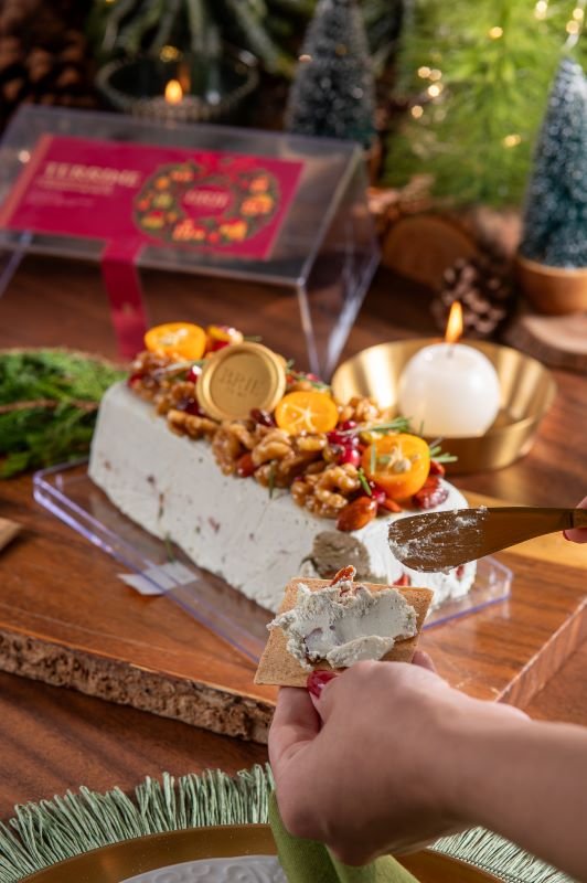 Pote acrílico retangular, contendo Terrine de gorgonzola cremosa, com textura delicada e sabor marcante, finalizada com uma generosa camada de caramelo artesanal de nuts e sementes de romã. Uma combinação equilibrada entre o salgado e o doce, perfeita para compartilhar. Acompanha 200 g de crackers e serve até 10 pessoas.