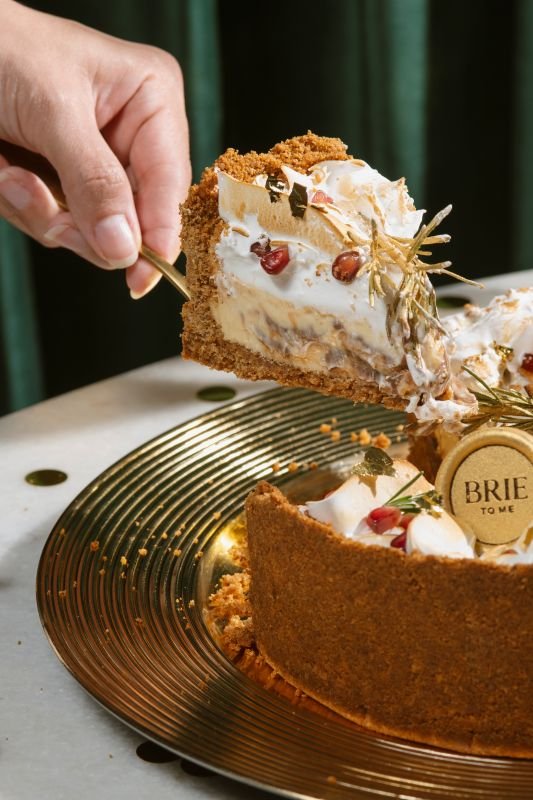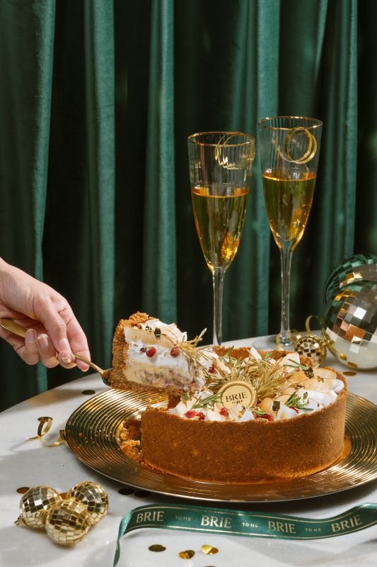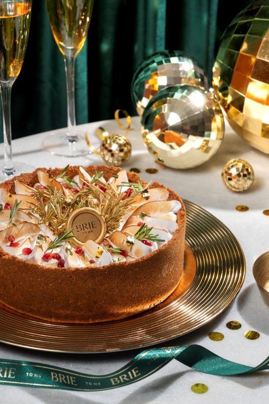 Uma delicada torta de 20 cm com crosta de biscoitos amanteigados, recheada com cremoso e refrescante mousse de maracujá trufado, mesclado com ganache de chocolate. Finalizada com merengue suíço maçaricado, folhas frescas de alecrim e sementes de romã, é servida em sousplat dourado com delicado toque de folha de ouro. Uma sobremesa que combina sabor, beleza e simbolismo de prosperidade, perfeita para celebrar a virada de ano. Serve até 8 pessoas.